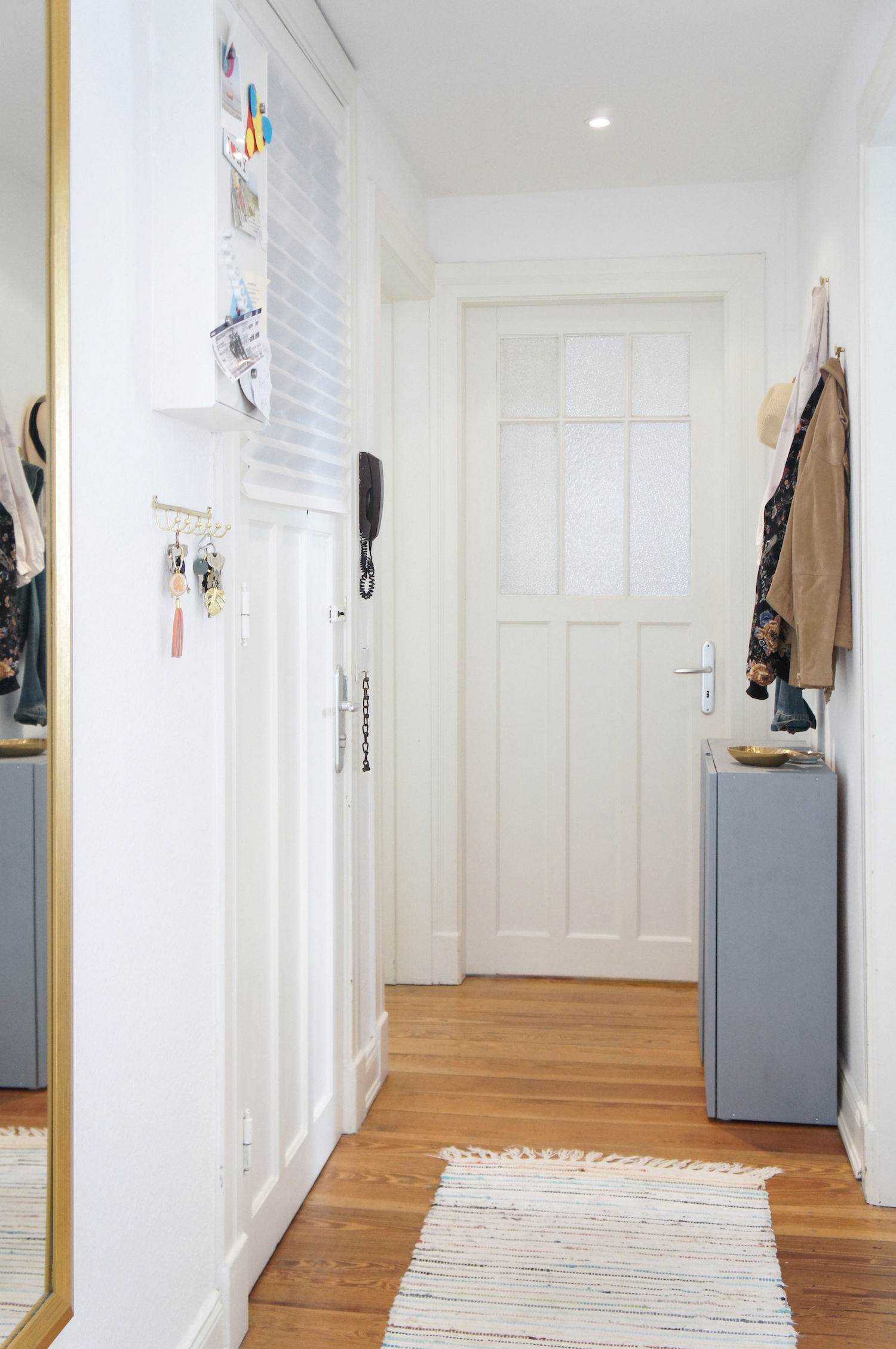 Ergebnis | Mit Hilfe eines neuen Farb- und Stilkonzeptes wurden alle Räume der Altbauwohnung neugestaltet. Bestehende Möbel wurden neu ausgerichtet und unpassende ausgetauscht. Durch optimierte Aufbewahrungslösungen lässt sich einfacher Ordnung schaffen. Mit einer neuen Anordnung der Möbel wurde ein luftigeres Raumgefühl geschaffen.